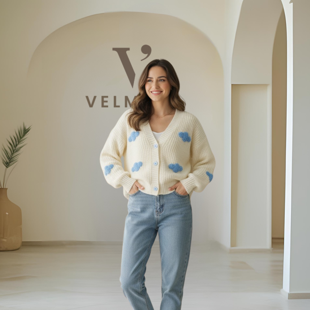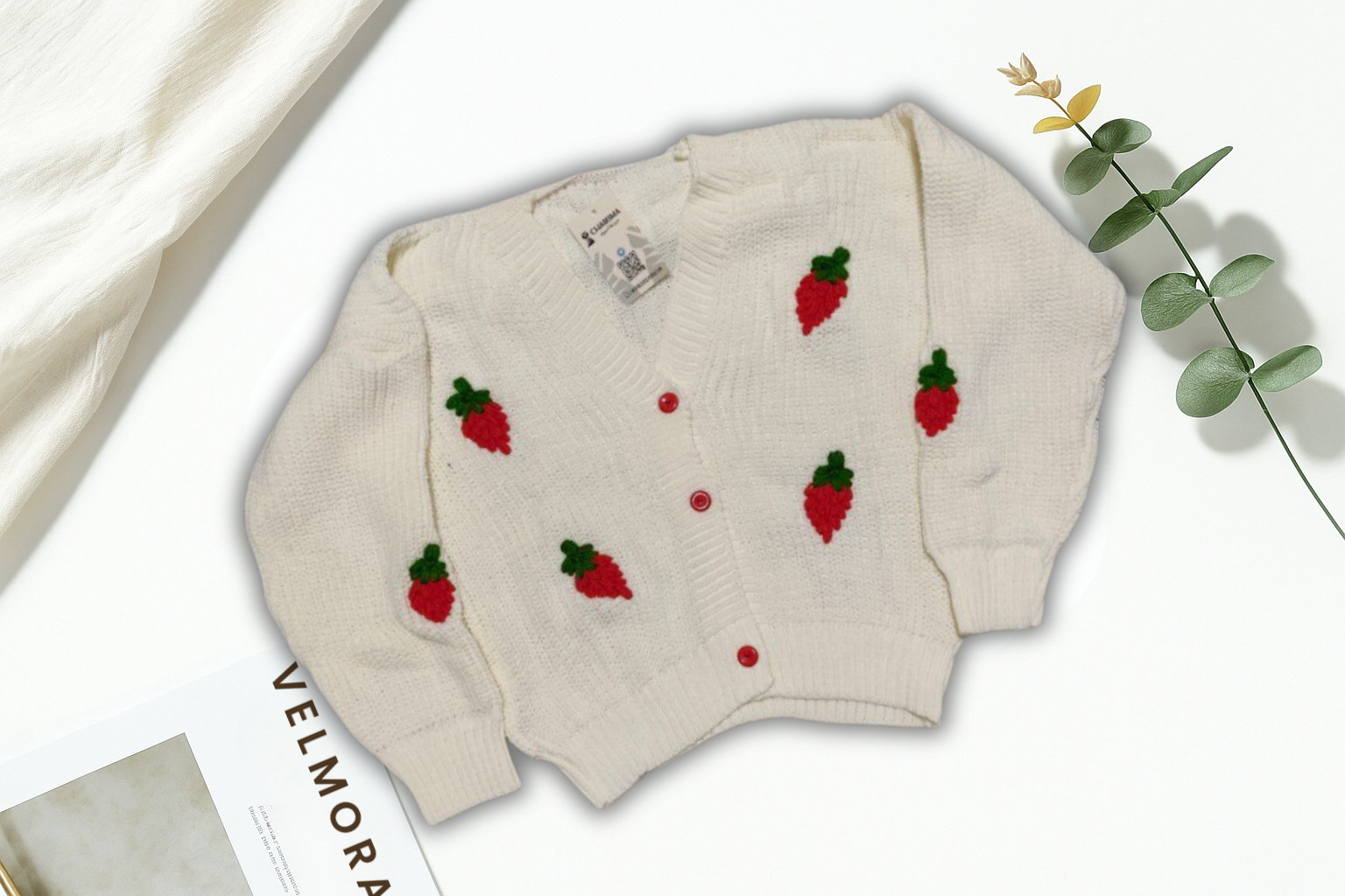 كارديجان هاند ميد بلمسة كيوت وأنثوية، برسومات مميزة من السحب أو الفراولة.