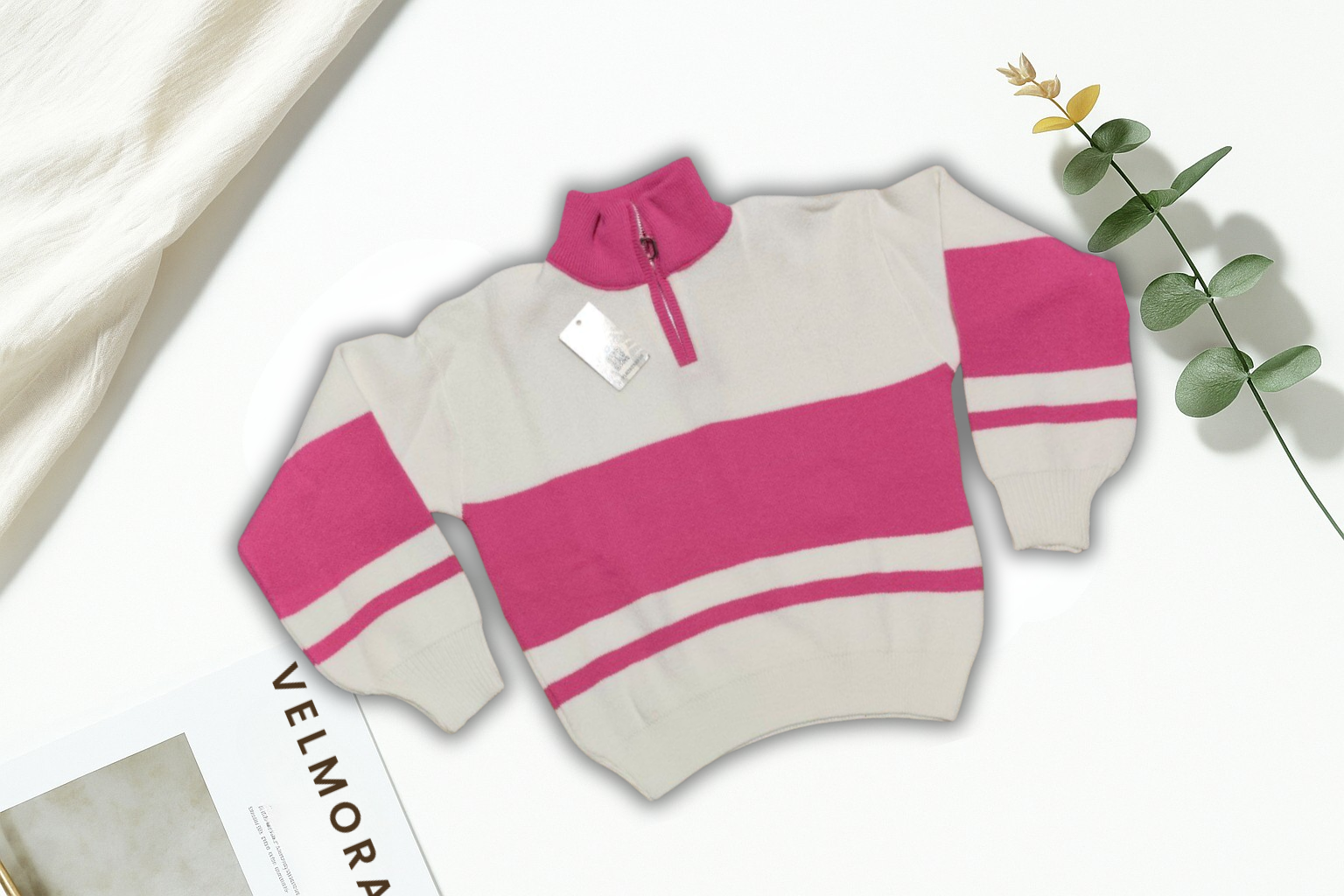 بلوفر سوستة مقلم من خامة تريكو ناعمة ومريحة جدًا، بستايل كاجوال أنيق يديكِ إطلالة دافئة وراقية في الشتاء.