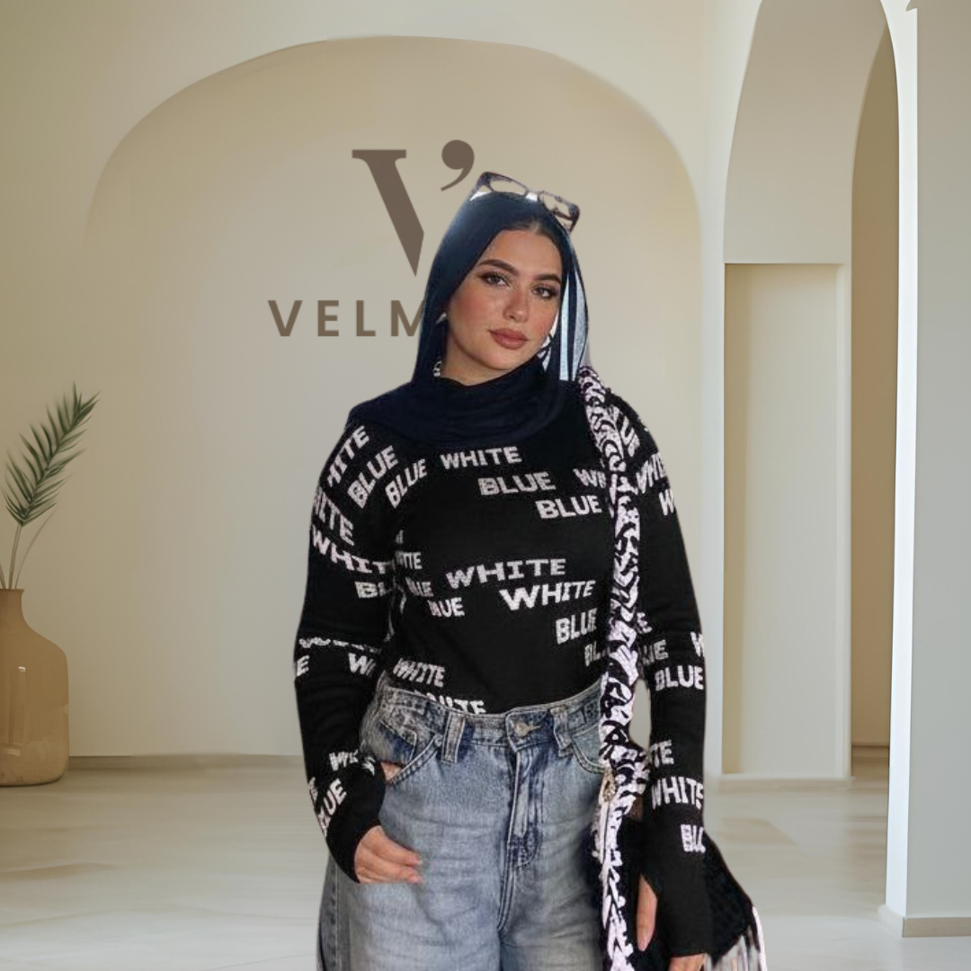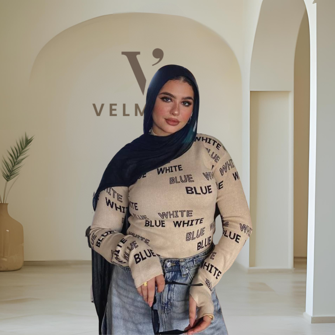 بلوزة وايت بلو من Velmora بخامة عجينة تقيلة ومريحة بتجمع بين الدفا والستايل العصري.